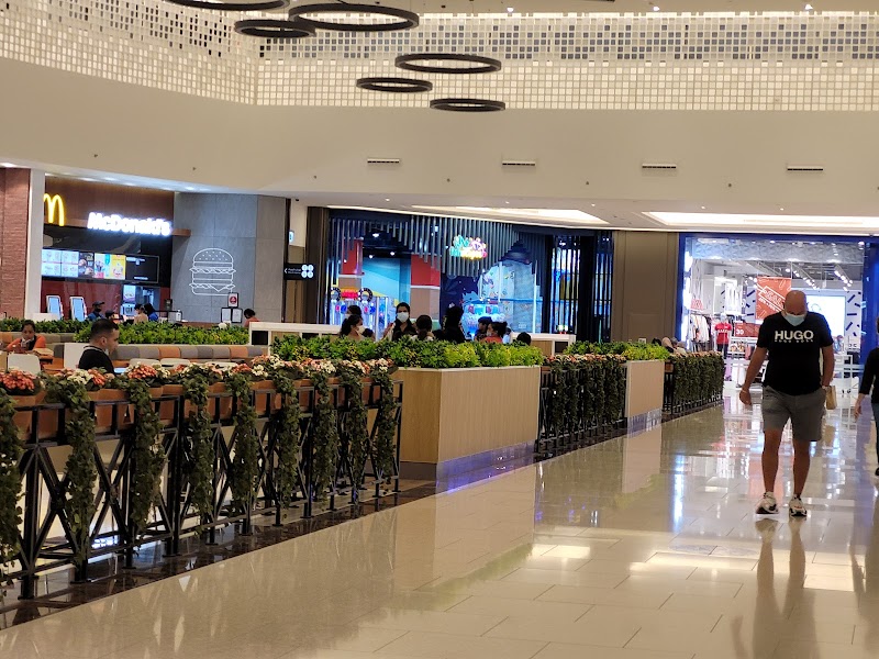 Contemporary shopping center with boutiques, a supermarket & restaurants, plus a food court.